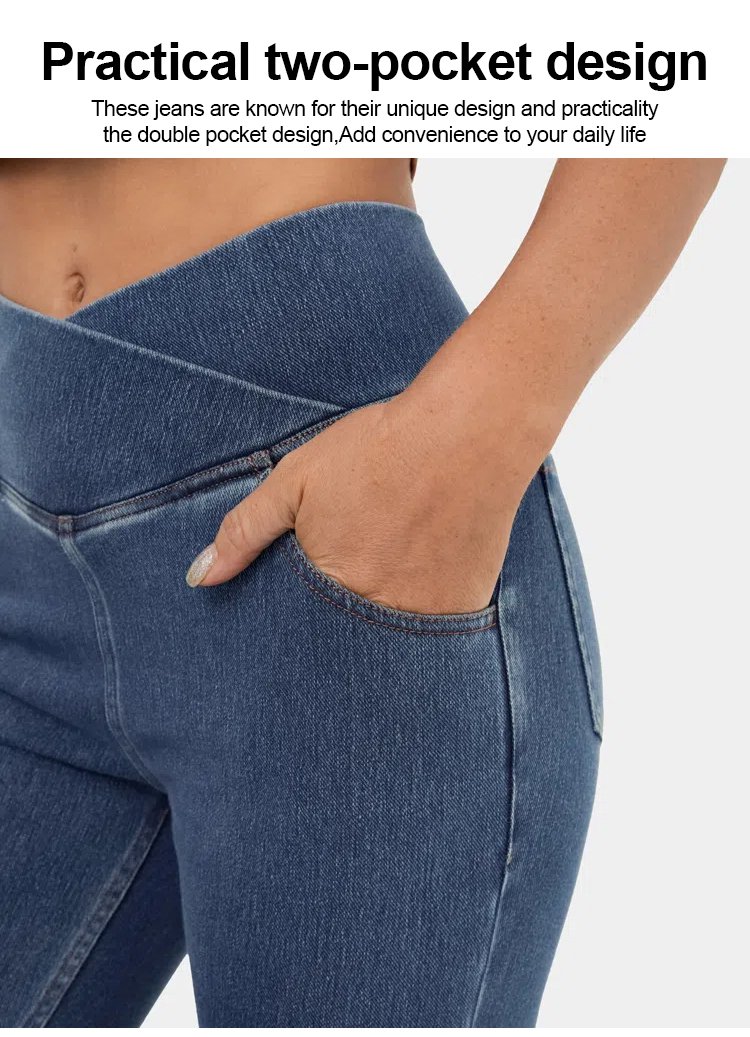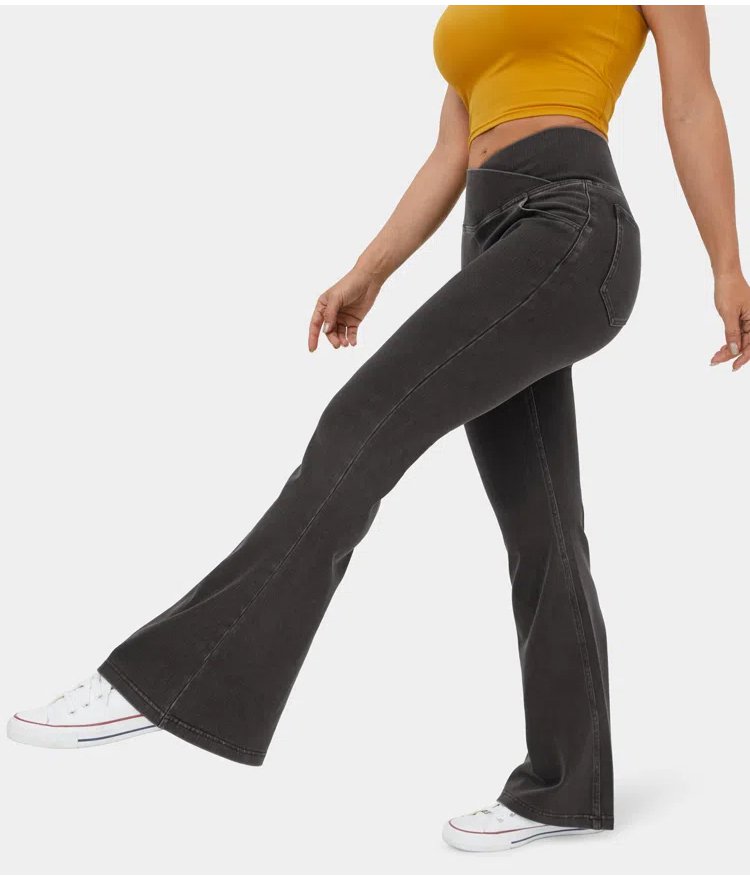 High elastic denim flared pants