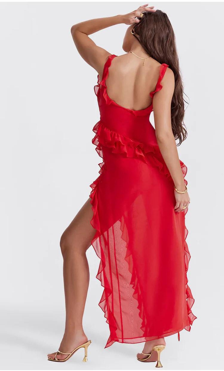 Fashion Sexy Wood Earring Splicing High Split Dresses