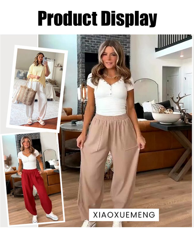 Women's wide-leg casual pants with pockets