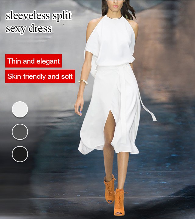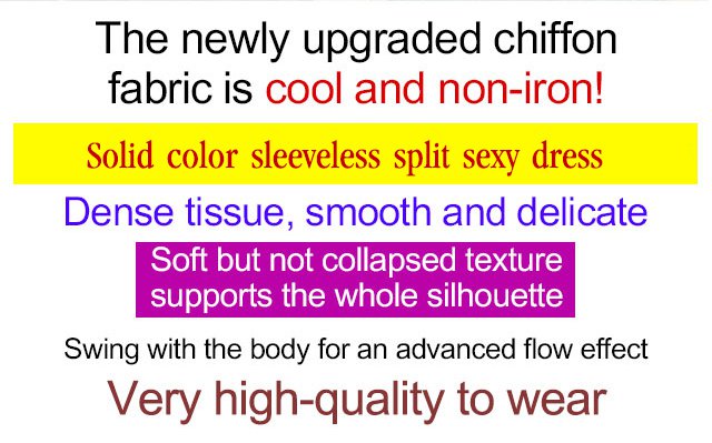 Sexy split, sleeveless design, showing slender arms. Smooth and stylish, modify the figure, hot promotion!